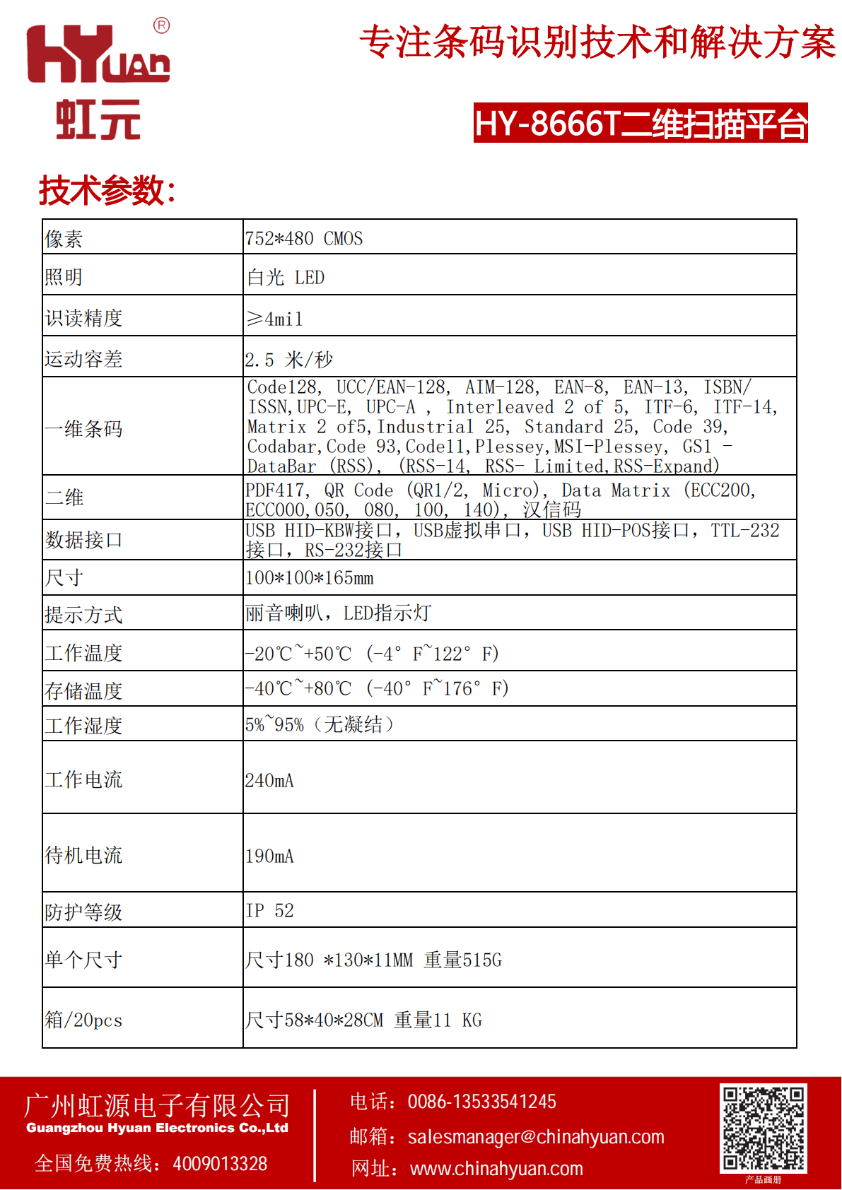 二维有线条码扫描器