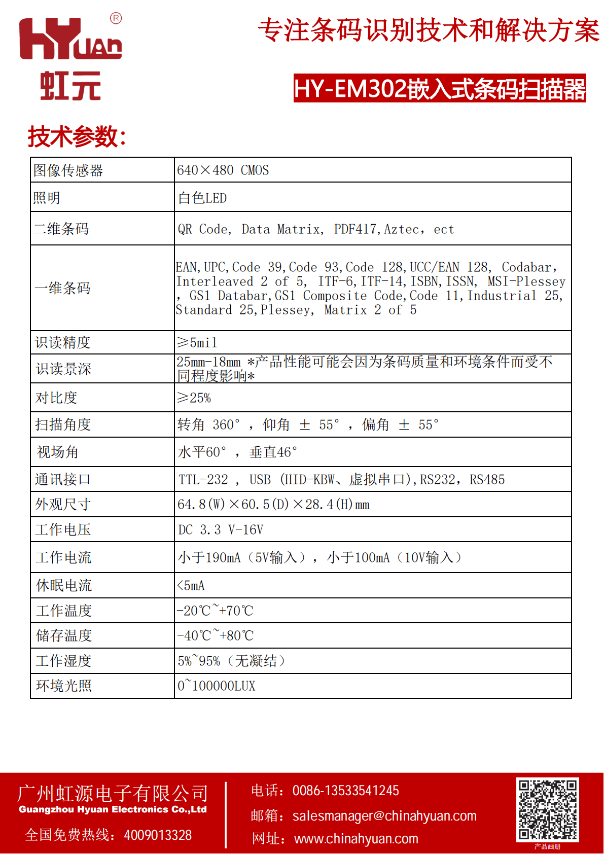 嵌入式条码扫描器