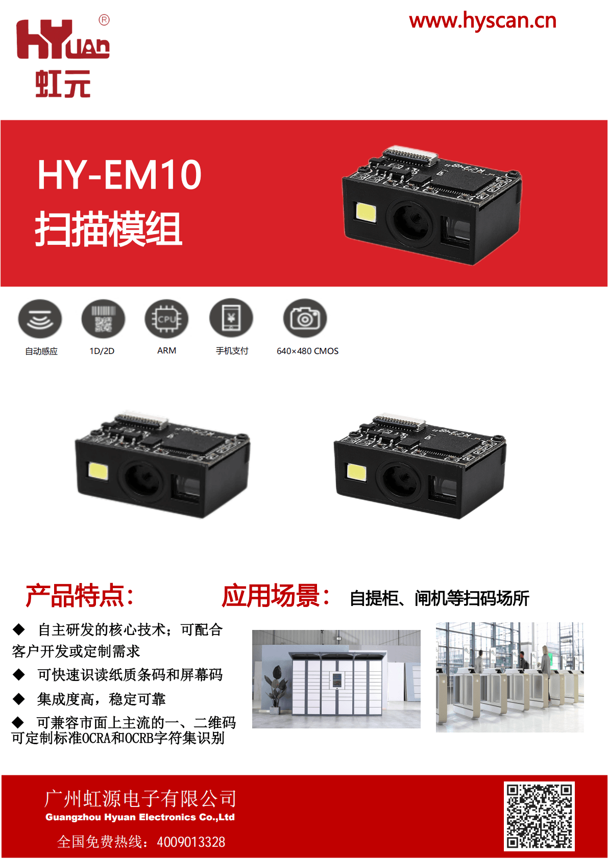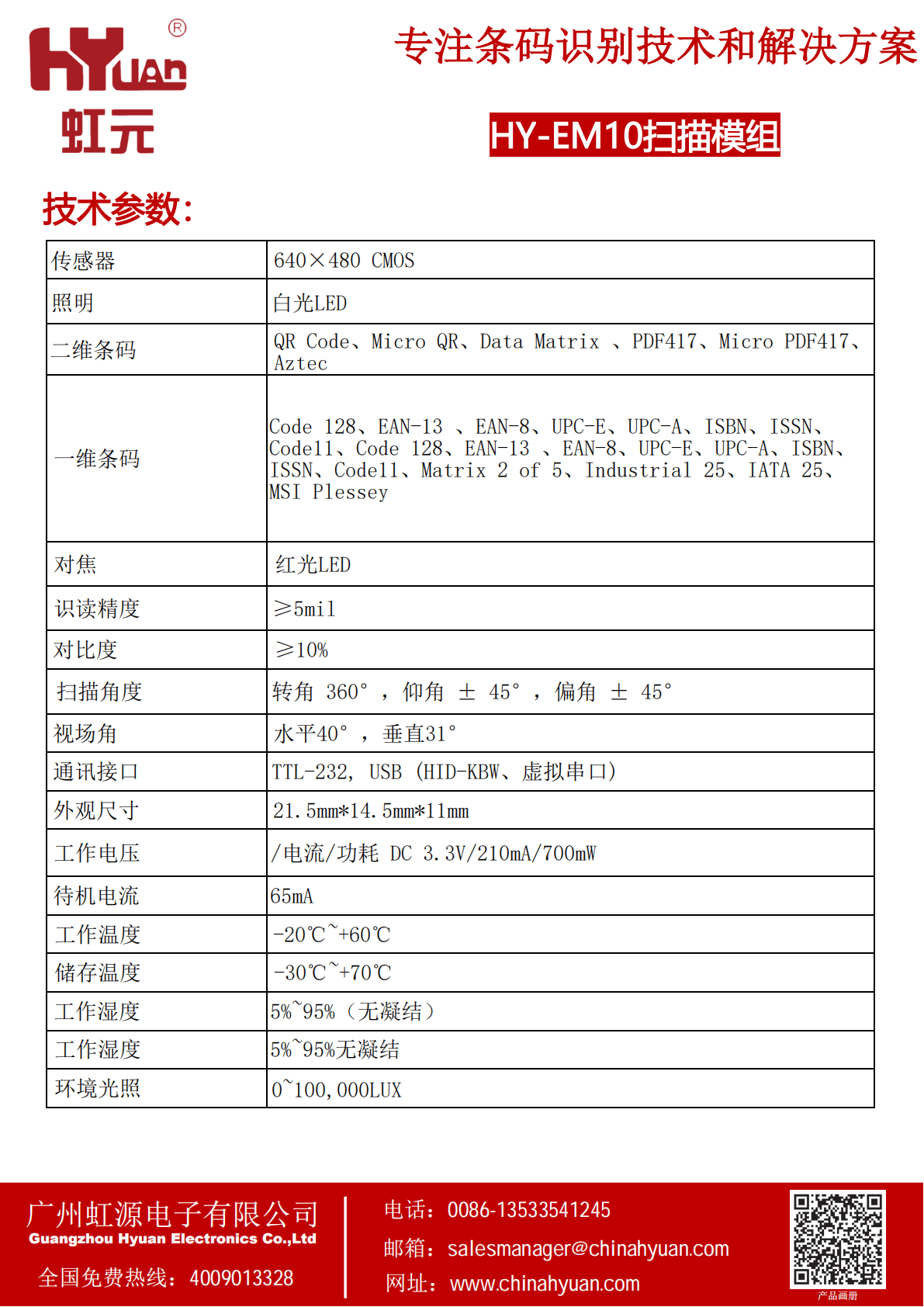 • 可兼容市面上主流的一、二维码 可定制标准OCRA和OCRB字符集识别