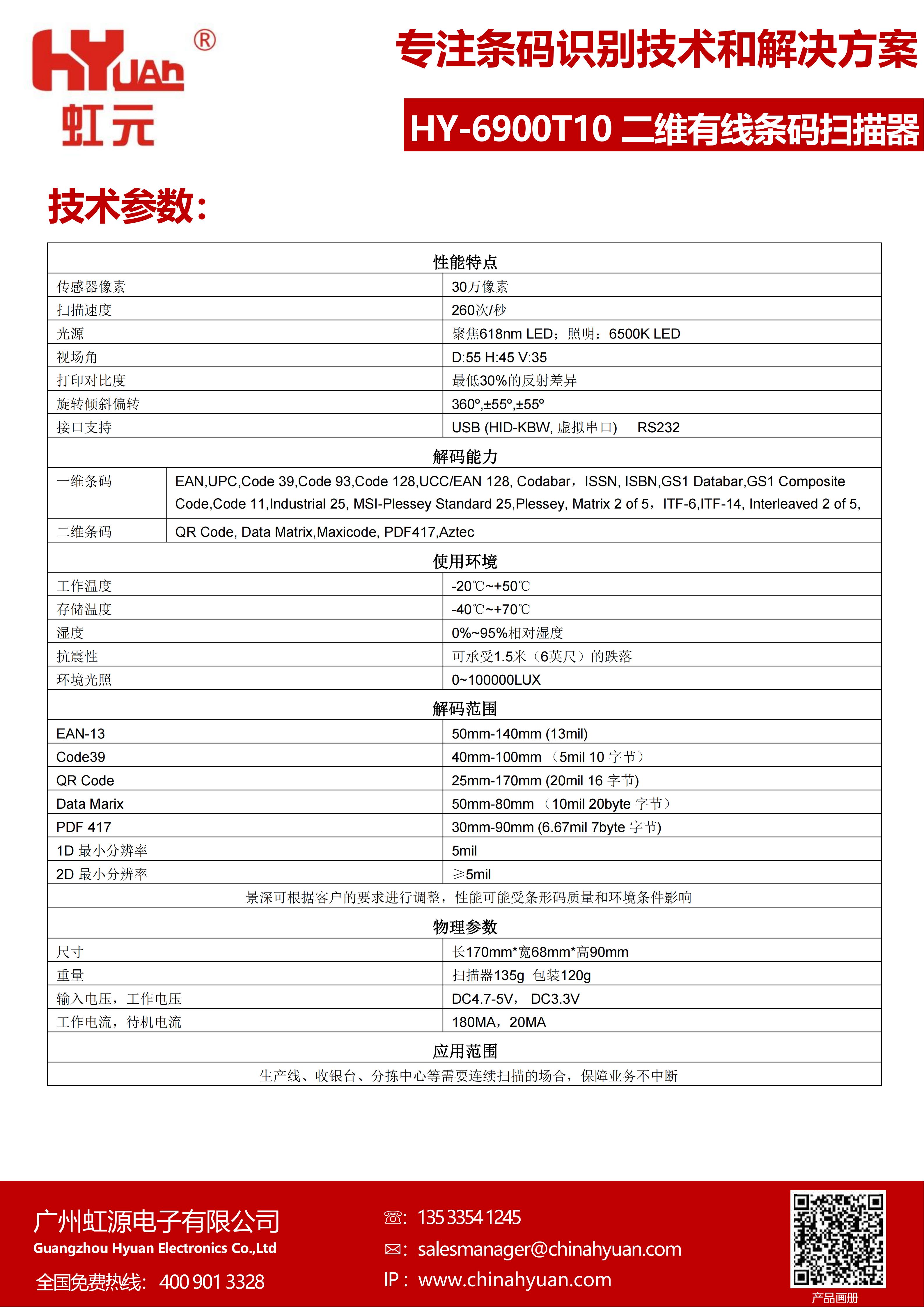 二维有线条码扫描器