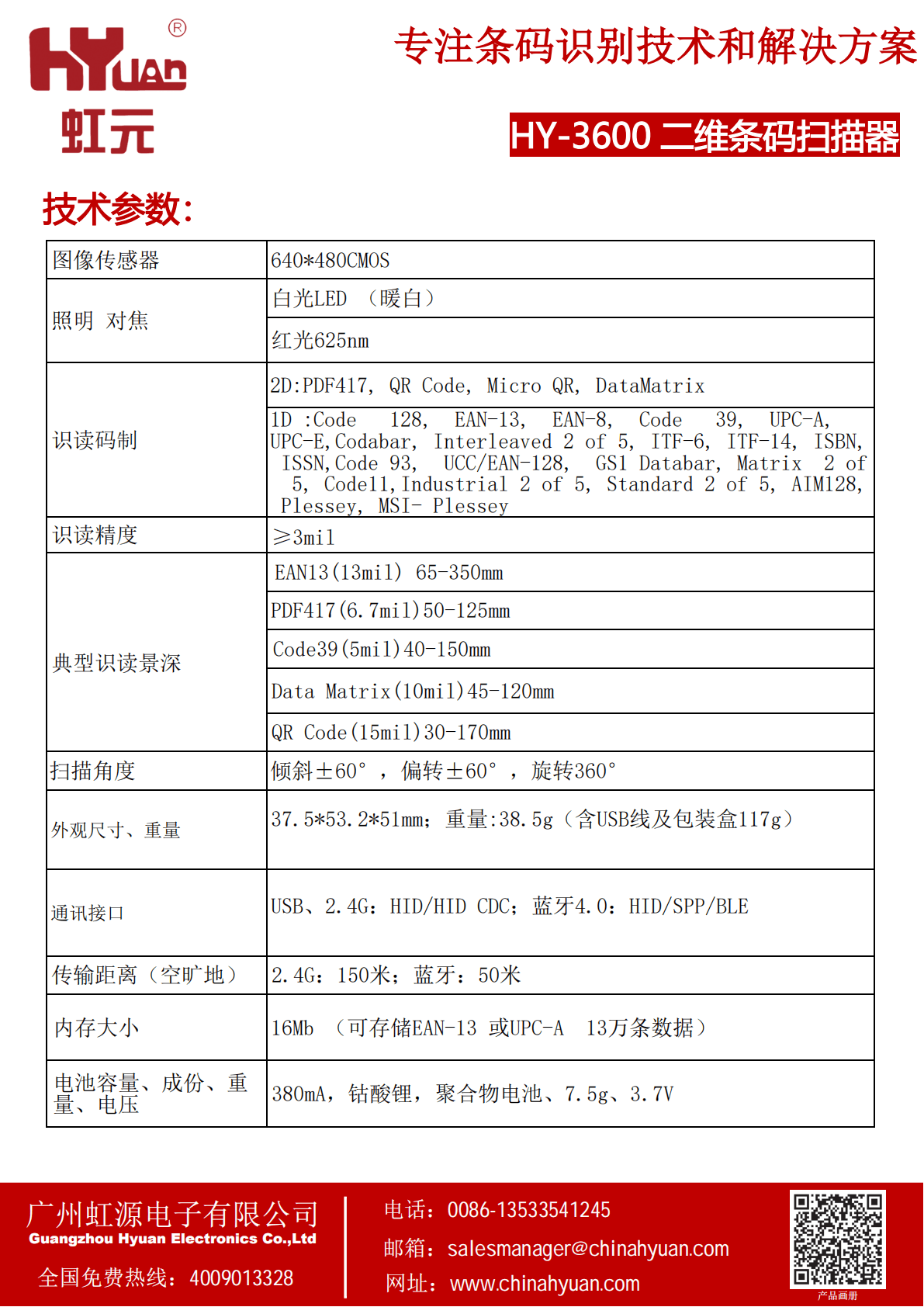 二维无线条码扫描器