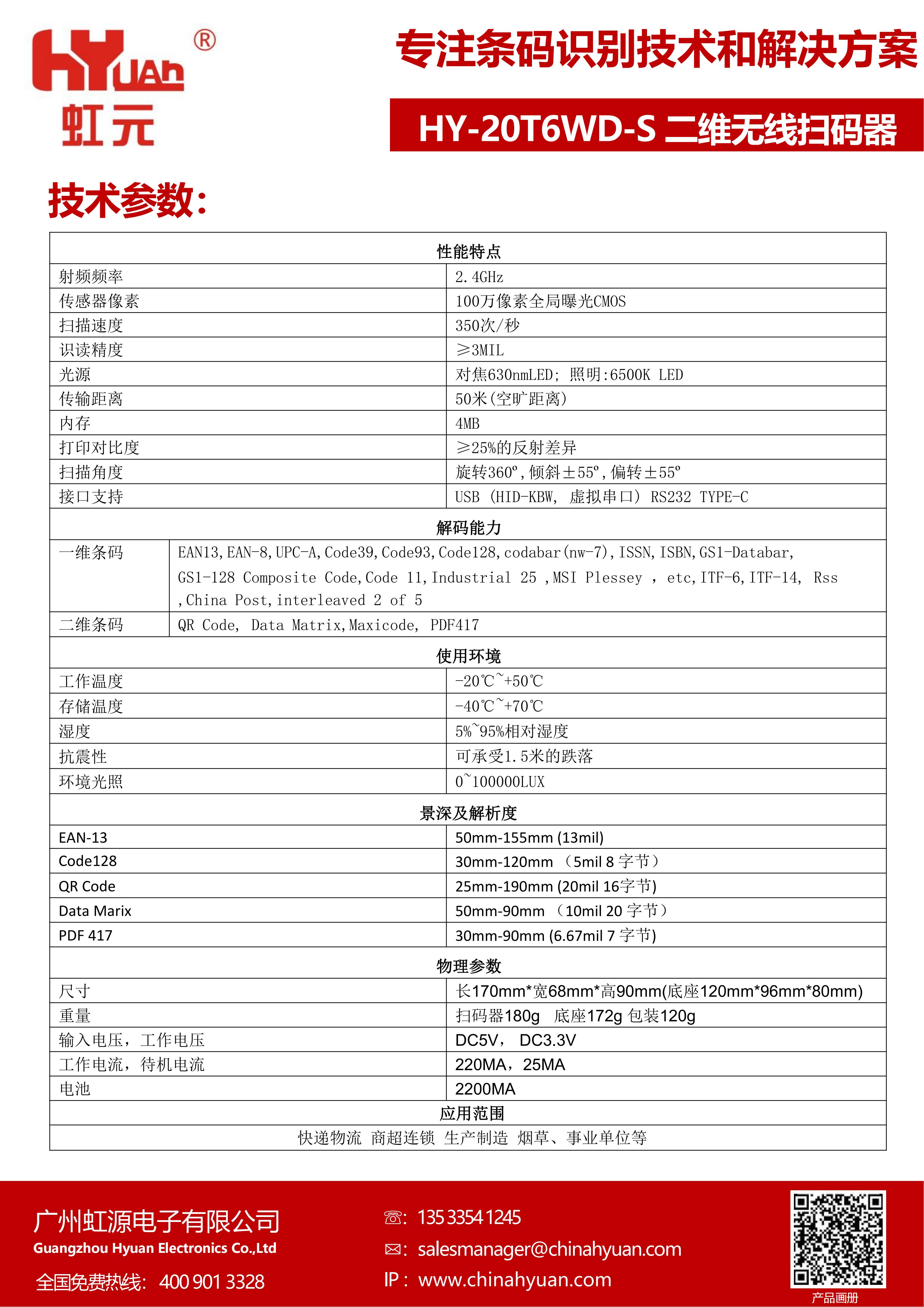 2200mAh电池,支持连续 扫描约11小时