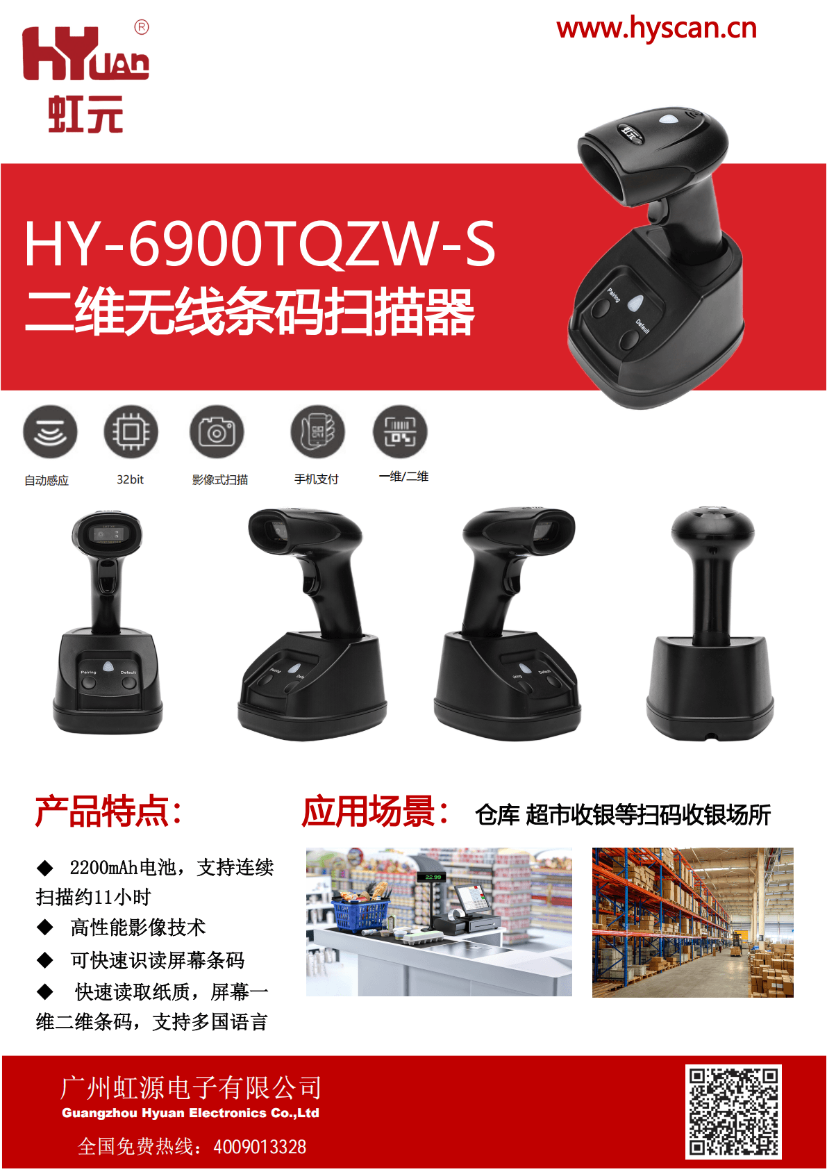 • 2200mAh电池,支持连续 扫描约11小时