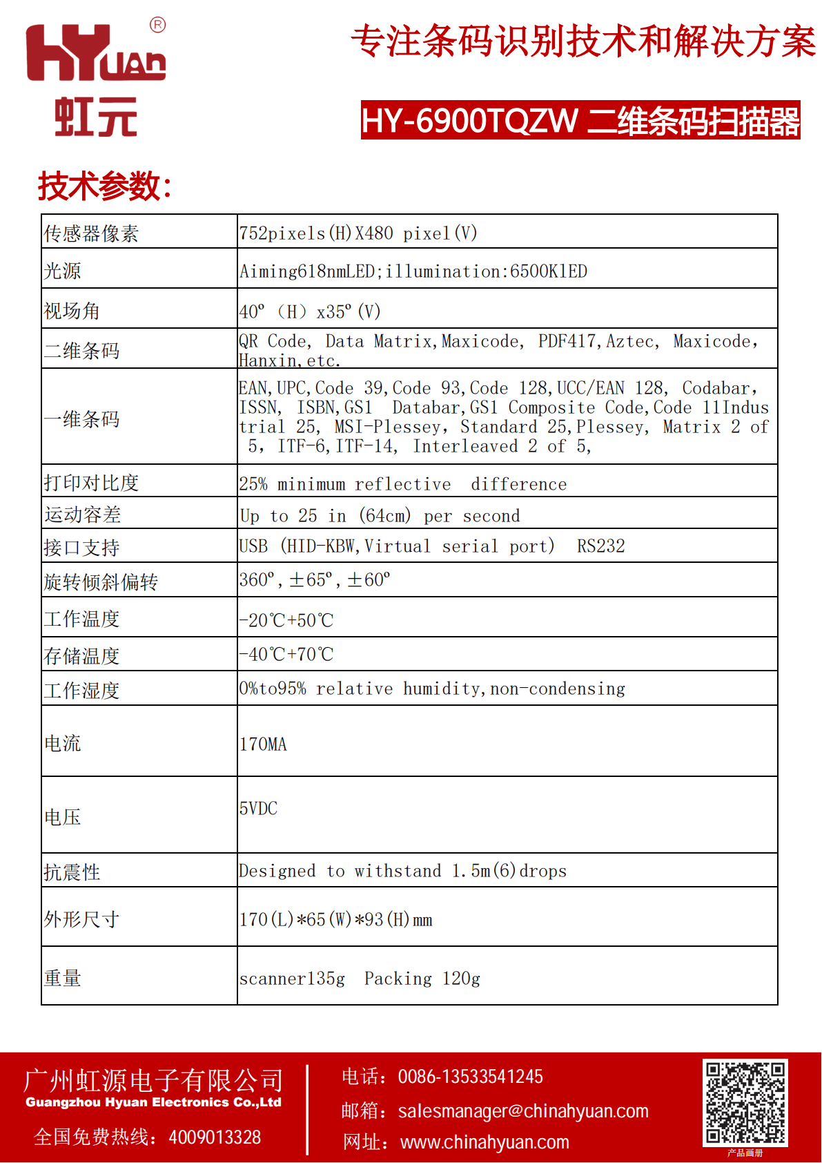 二维有线条码扫描器
